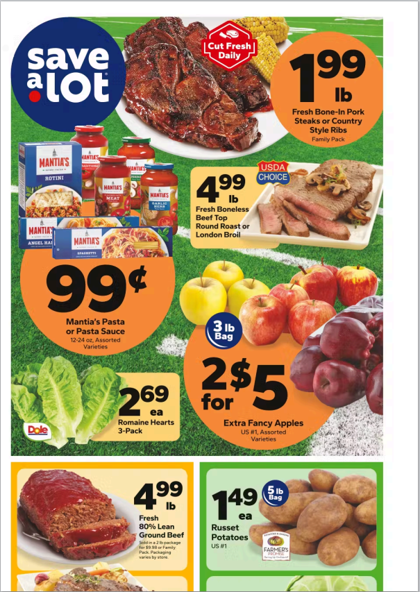 The Save A Lot Weekly Ad features a wide selection of products for every household need. Find fresh fruits, vegetables, and quality meats at low prices, along with pantry staples, dairy, frozen foods, snacks, and beverages. Weekly specials across each category help you save more while shopping for everyday essentials. With so many options, the Save A Lot Weekly Ad makes it easy to plan meals and stick to your budget.